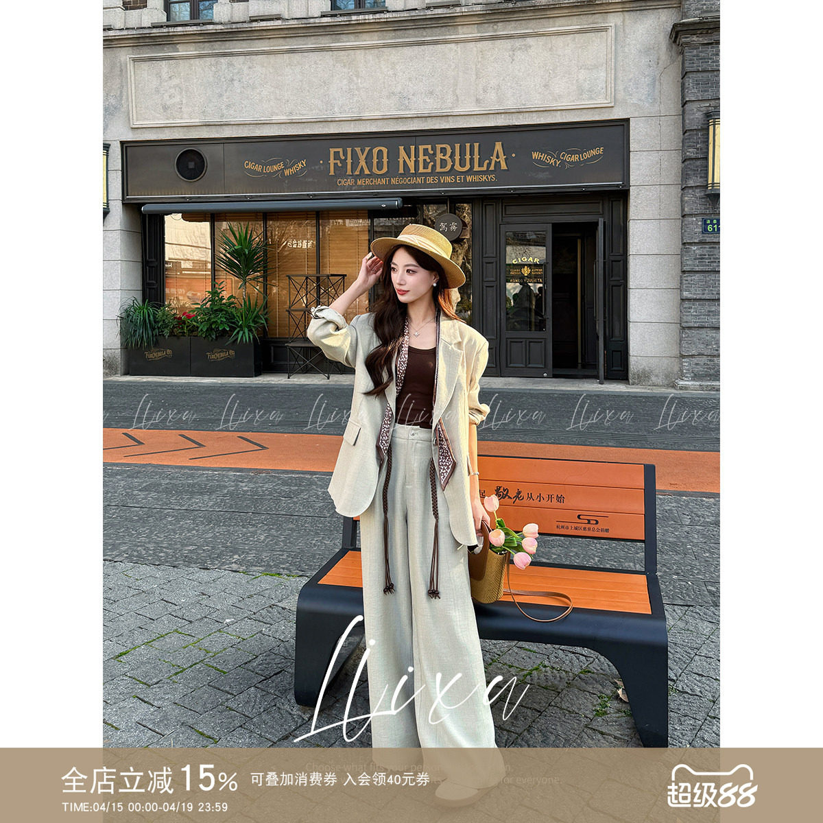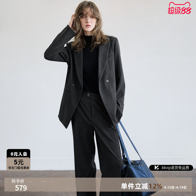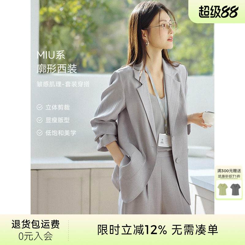 XWI欣未MIU系高智感西装套装女春季轻职场肌理感西服直筒裤两件套