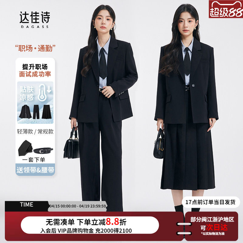 达佳诗黑色西装外套女薄款大学生正装高级职业套装小个子女士西服