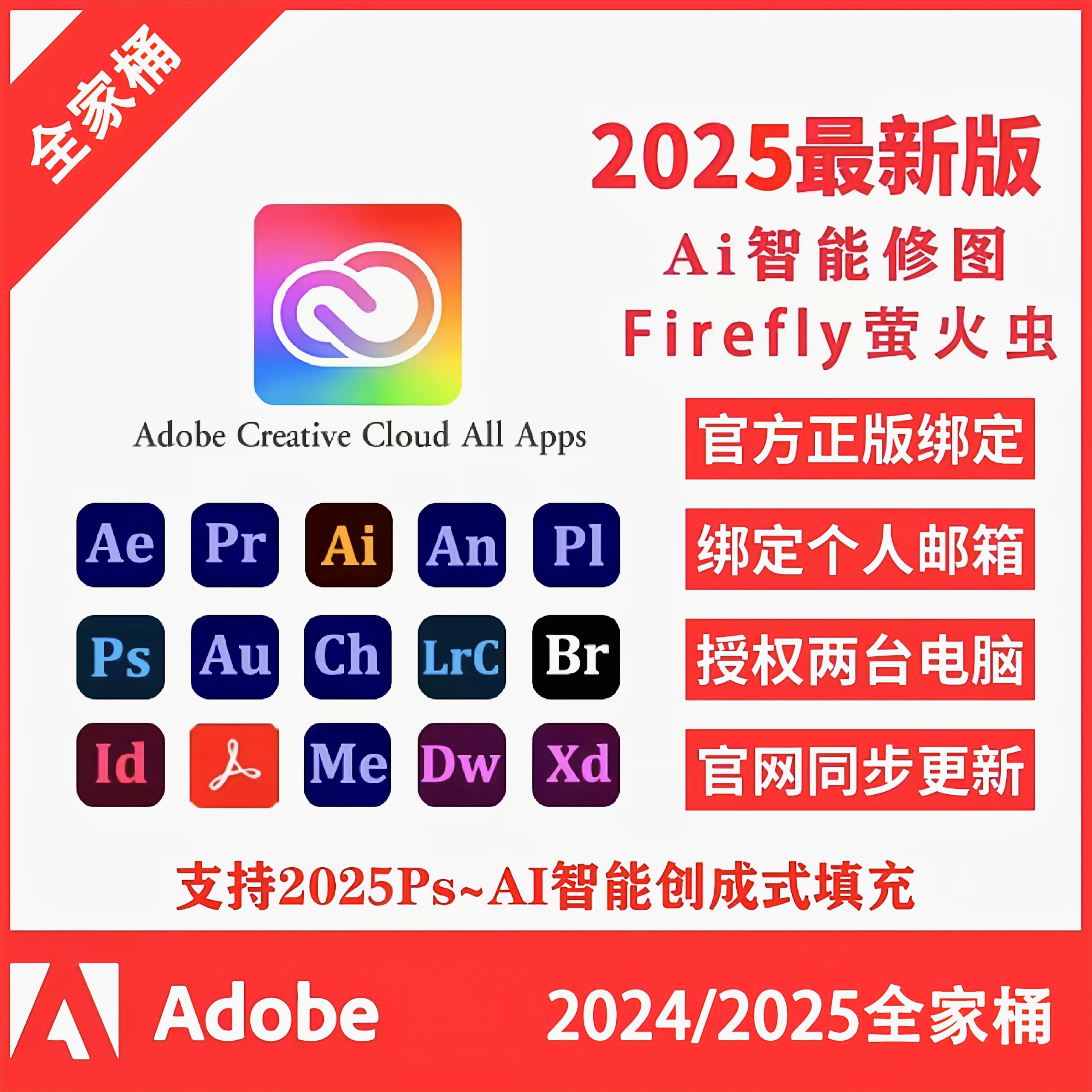 高版本Adobe全家桶2025全套正版年费ai/pr/lrc/ae/Ps软件激活订阅