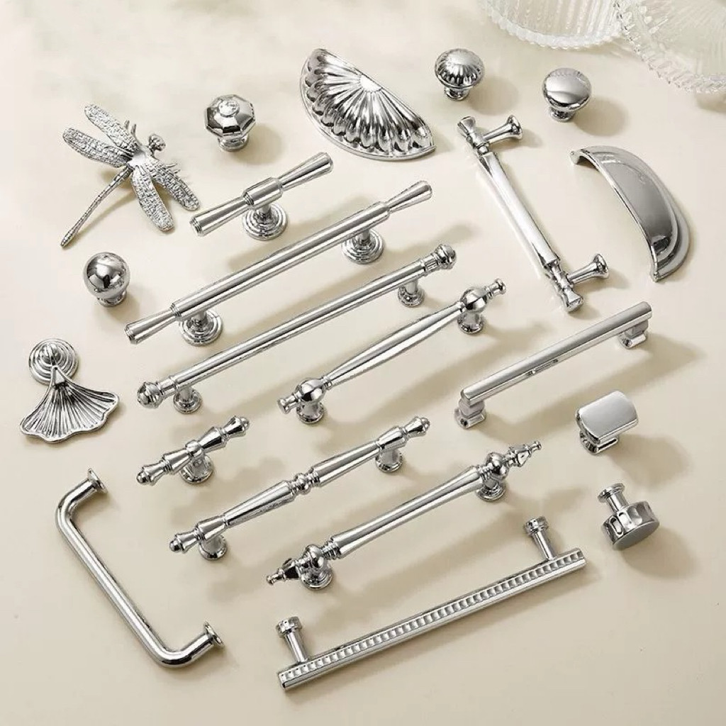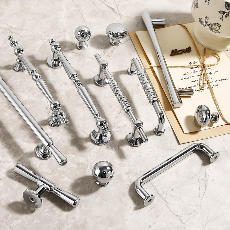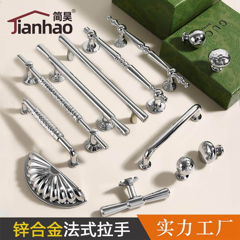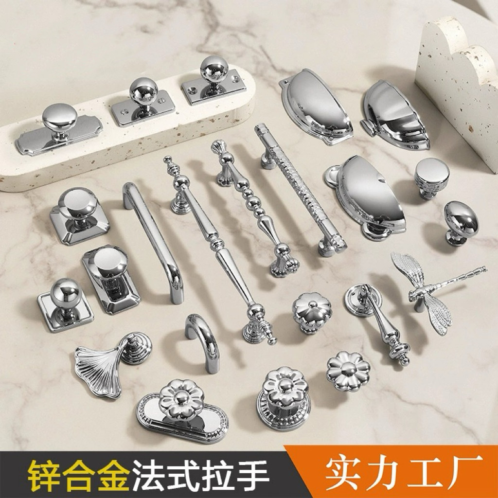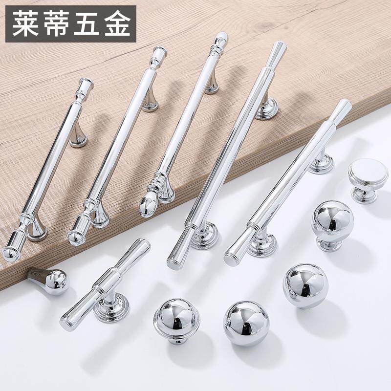 法式轻奢亮铬亮银色锌合金衣柜门拉手现代简约衣柜橱柜抽屉门把手