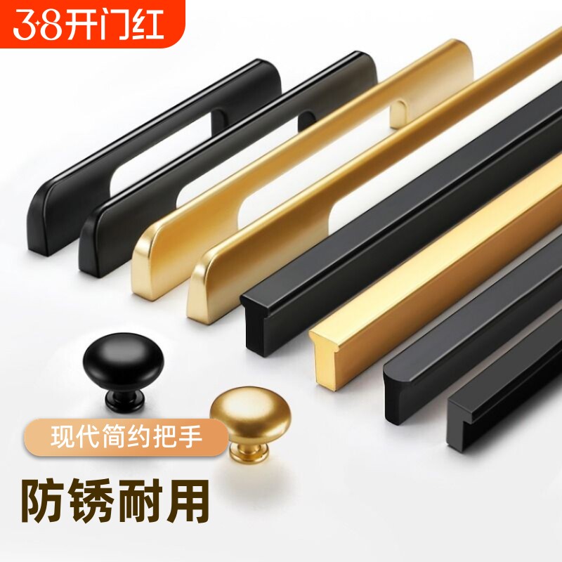北欧衣柜门拉手现代简约轻奢黑色橱柜把手金色加长柜门抽屉小拉手