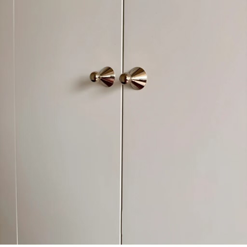 现代简约橱柜衣柜门把手法式电镀鸽子蛋银色黄铜圆球抽屉拉手极简