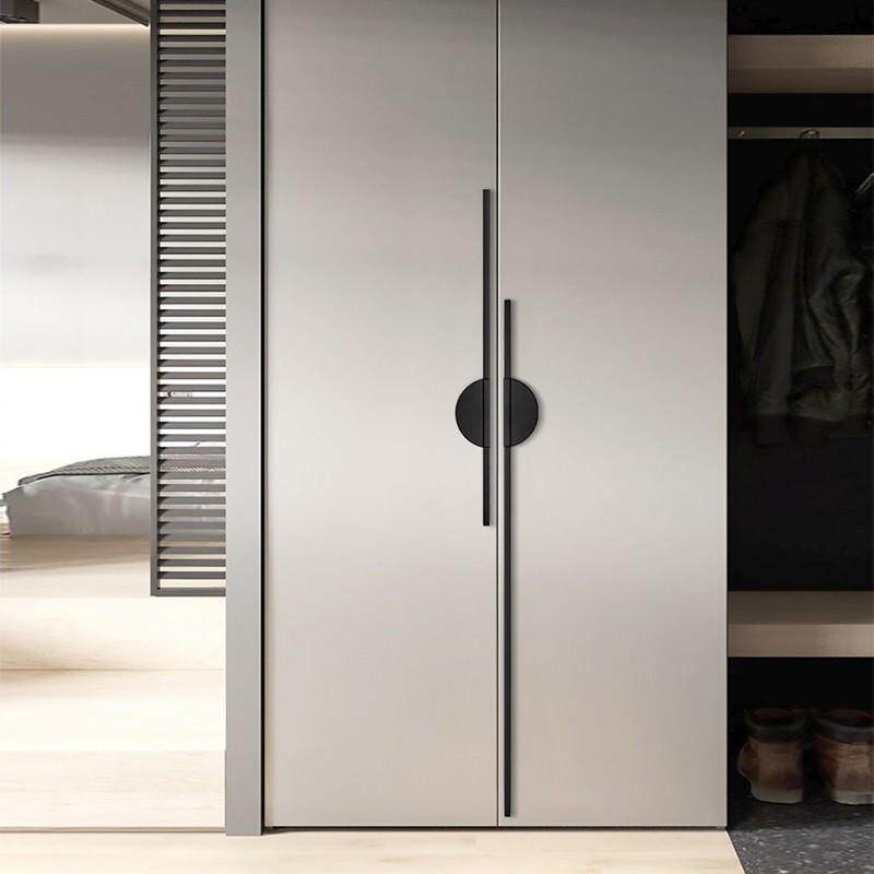 圆头T型现代简约大衣柜门拉手黑色橱柜门加长门把手白色顶柜拉手