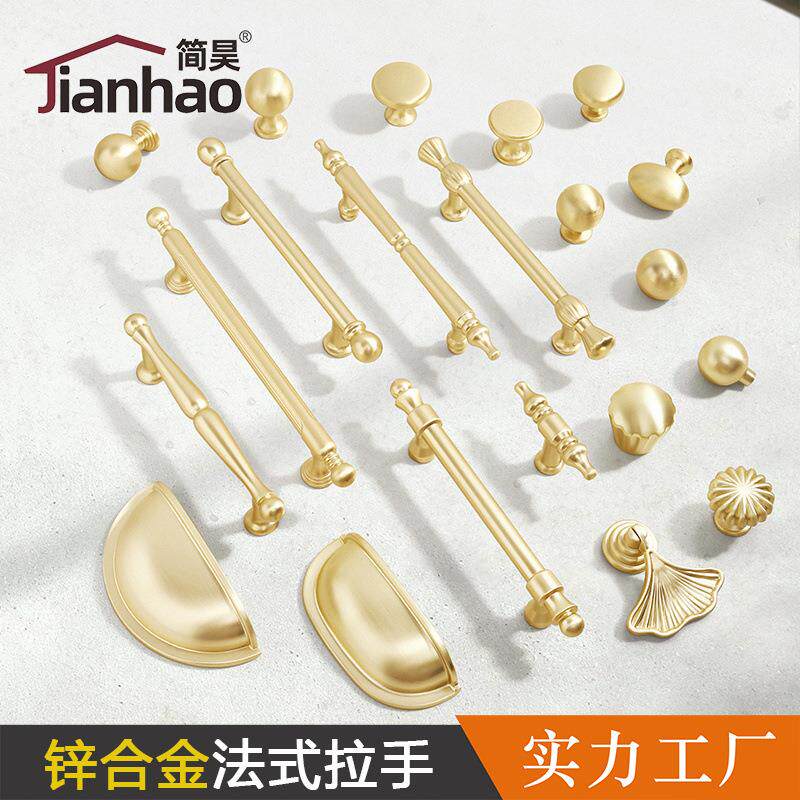 法式锌合金衣柜门拉手现代简约金色哑光铜色抽屉单孔橱柜实心把手