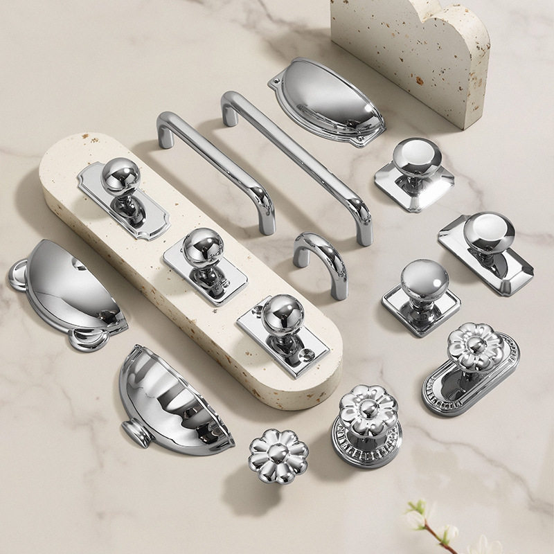 法式锌合金衣柜门拉手现代简约镀铬亮光银色抽屉单孔橱柜实心把手