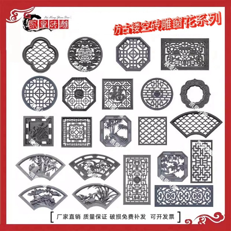 花窗花格窗仿古造型庭院围墙花园雕水泥花砖装饰影壁墙砖雕影壁墙