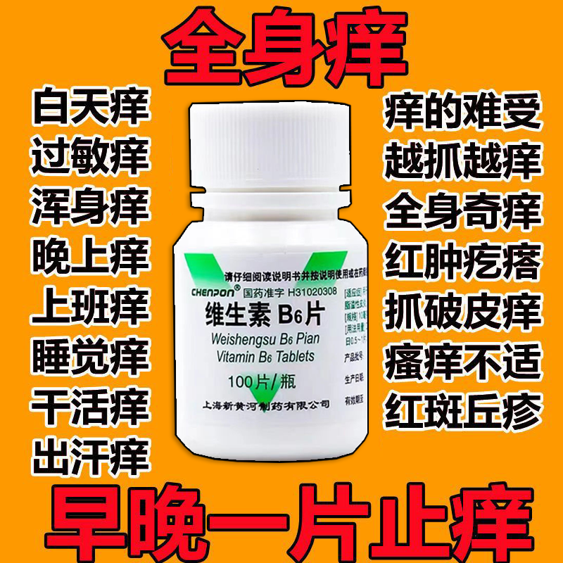 维生素B6片脂溢性皮炎皮肤痒止痒药全身手脚大腿内侧瘙痒干痒b6片