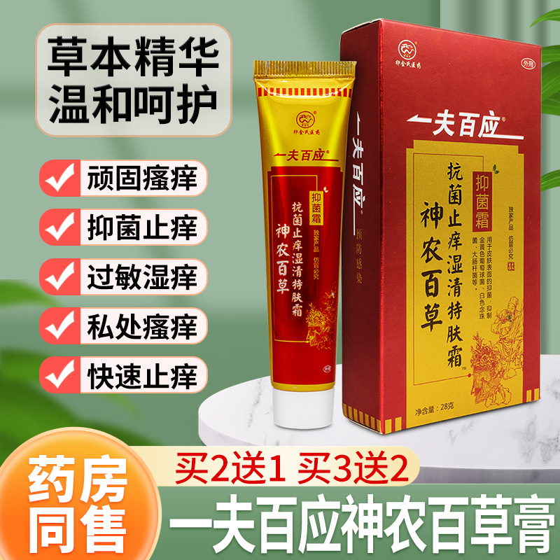 卯金氏一夫百应神农百草膏皮肤外用止痒抑菌霜大腿内侧瘙痒抑菌膏