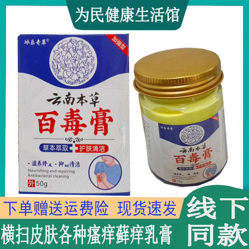 冰乐奇草云南本草百毒膏手足藓水泡脱皮藓体股藓大腿内侧瘙痒蚊虫