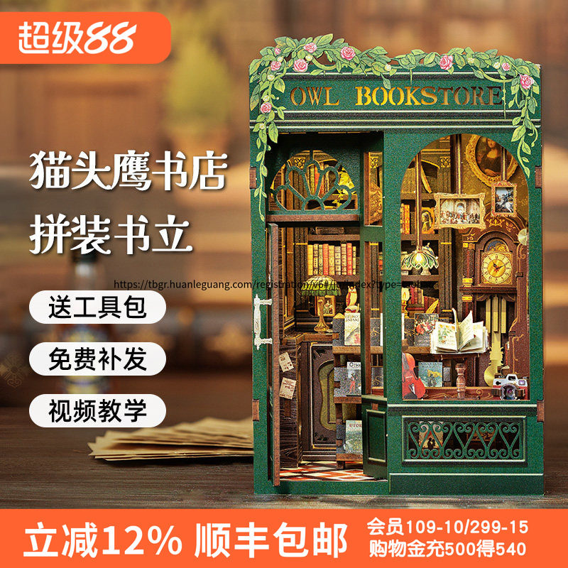 CuteBee手工书立diy小屋猫头鹰书店模型香榭花舍立体拼图生日礼物