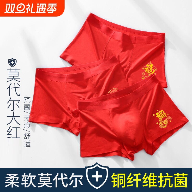 莫代尔本命年大红色内裤男无痕礼盒礼袋结婚新郎礼物2026年平角裤