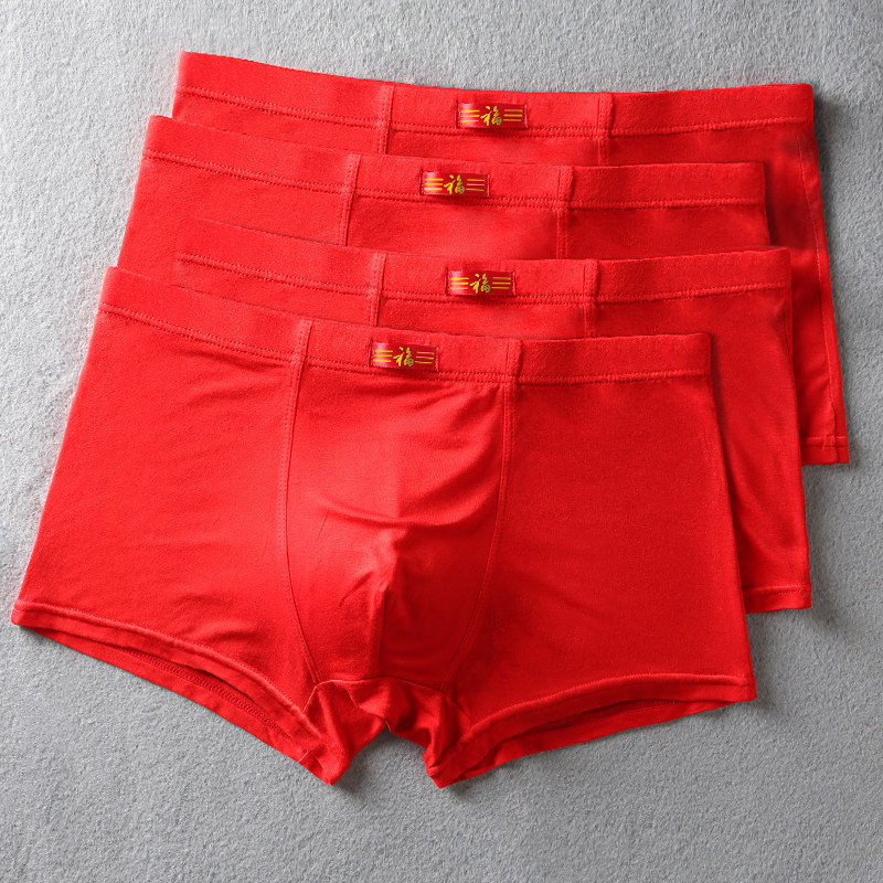 男士大红色内裤男平角裤本命年结婚马年莫代尔棉柔软中腰时尚四角