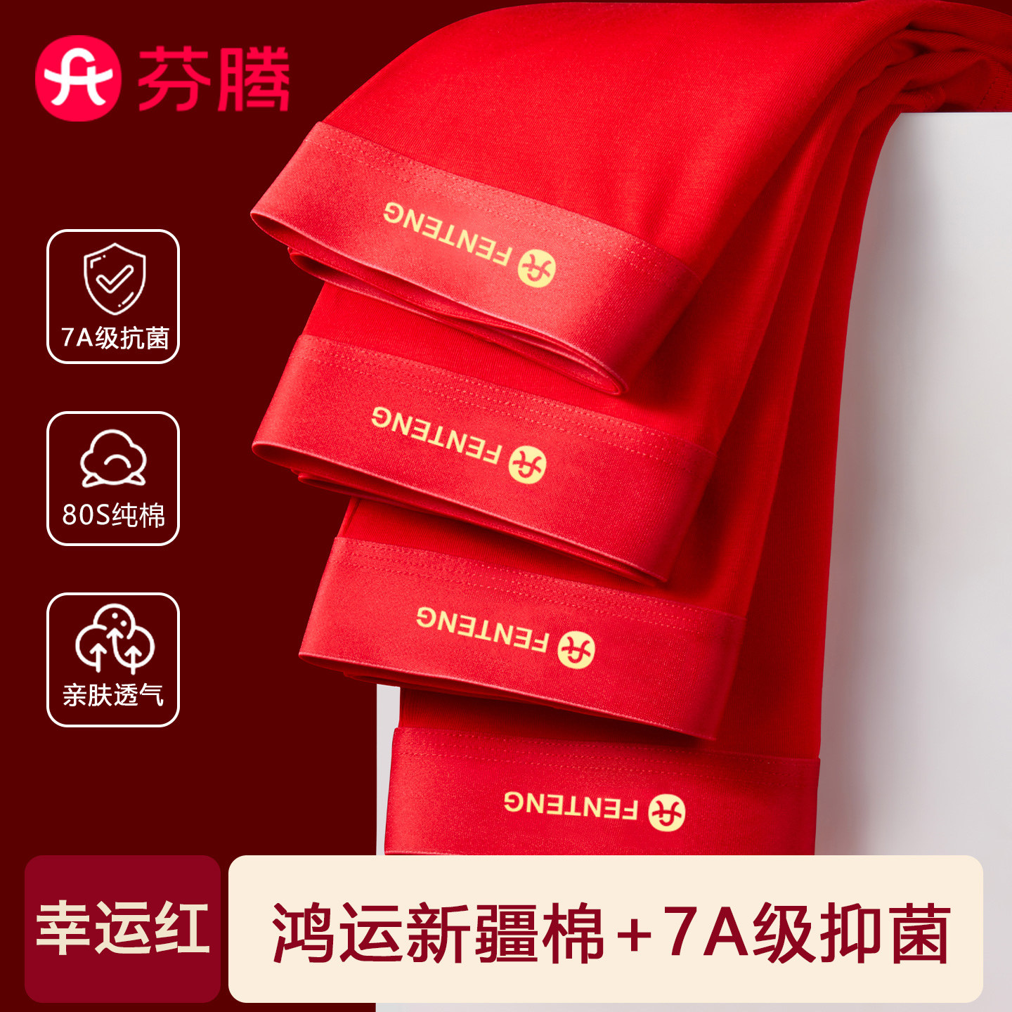 芬腾本命年大红色内裤男士纯棉2026新款属马年青少年男生平角短裤