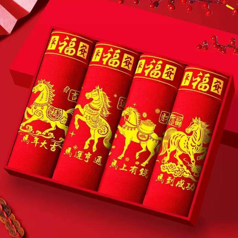 CarreKenbt大红色内裤男本命年桑蚕丝裆属马生肖平角四角短裤礼盒