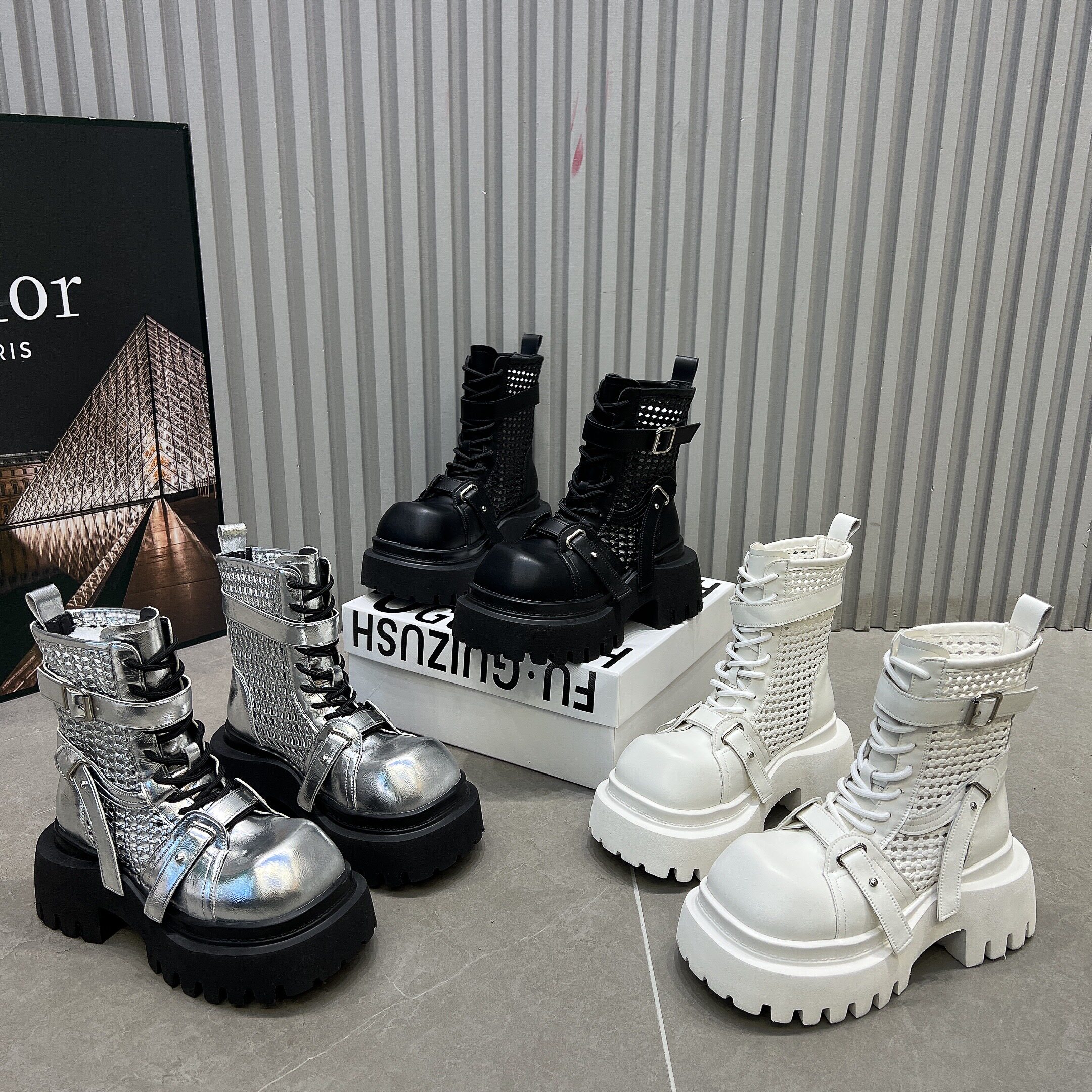 包邮2026新款外贸春秋短靴单靴平底马丁靴镂空厚底鞋系带女凉靴子