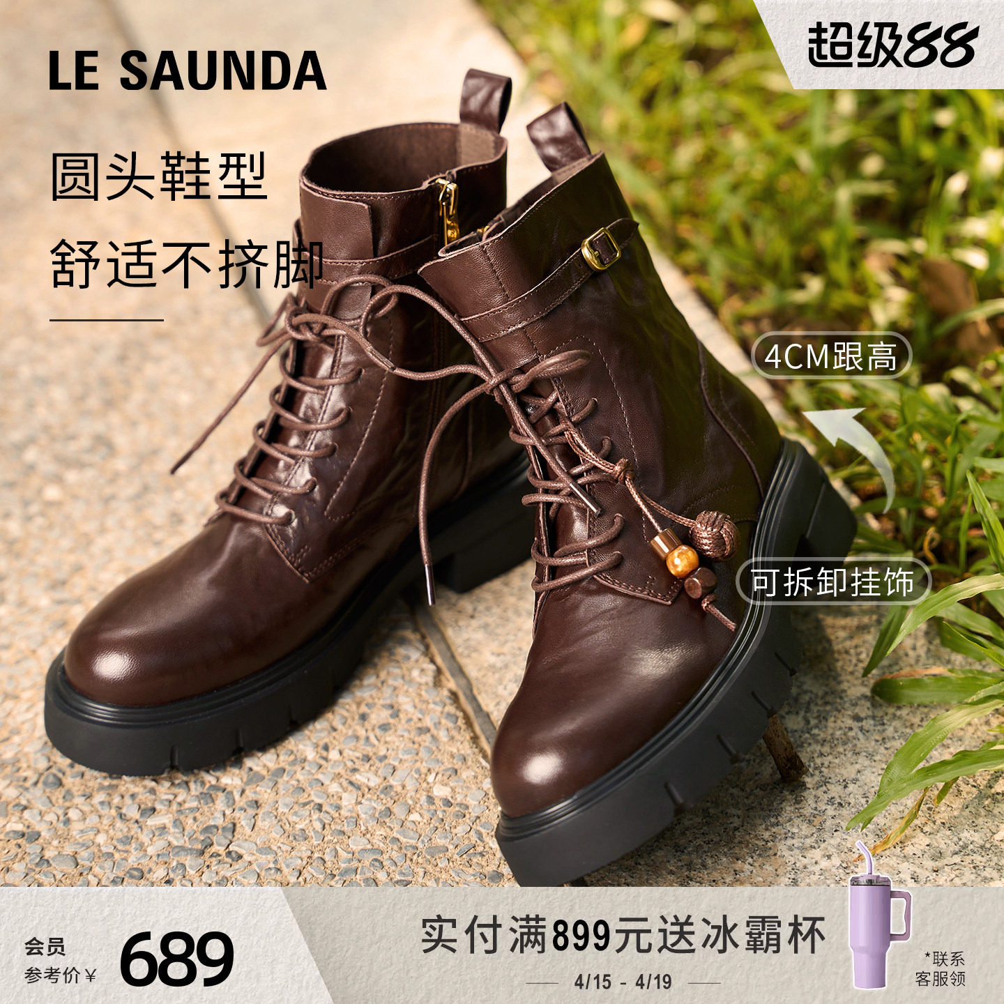 莱尔斯丹格林日冬新款粗跟系带厚底羊皮马丁短靴子女鞋42101