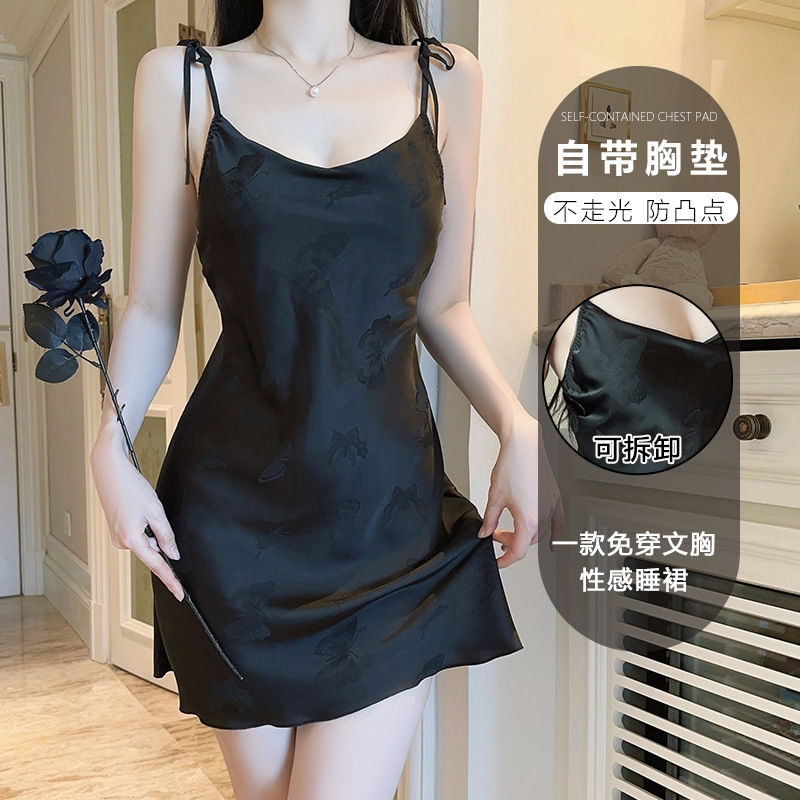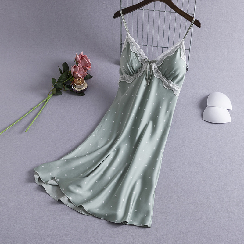 性感冰丝薄款带胸垫蕾丝情趣睡衣波点纯欲风新款情调诱惑感居家服