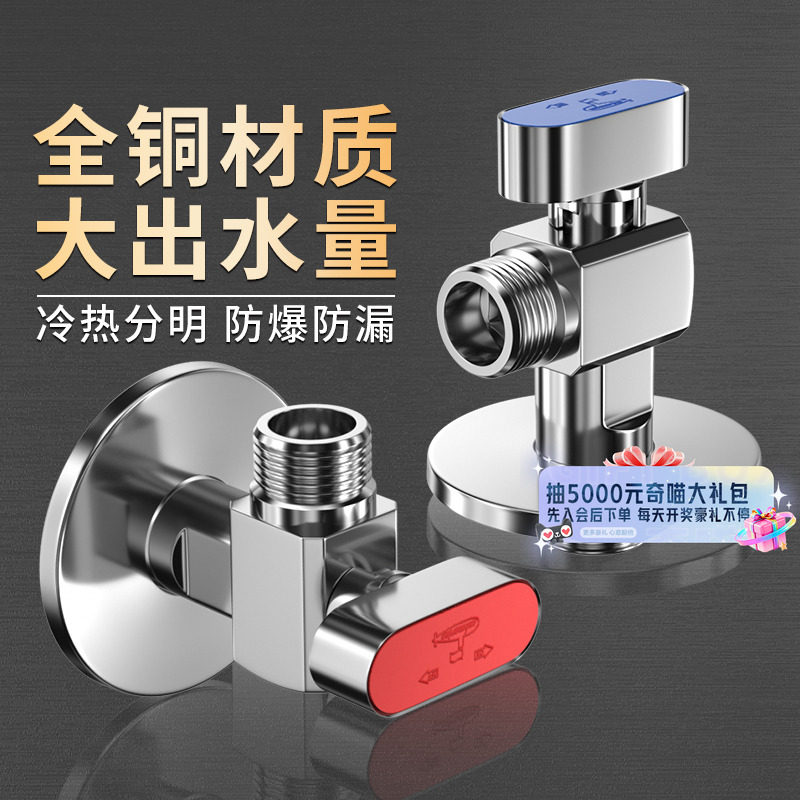 冷热水角阀家用全铜马桶三角阀4水龙头八字阀热水器水阀球阀加长