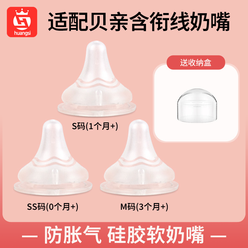 适配贝亲奶嘴0到3个月奶瓶配件新生婴儿s号ss仿真母乳m码宝宝奶嘴
