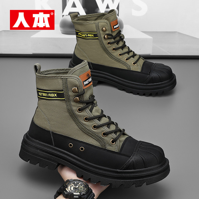 人本男鞋旗舰店正品工装休闲板鞋男士潮流韩版伐木鞋运动鞋马丁靴