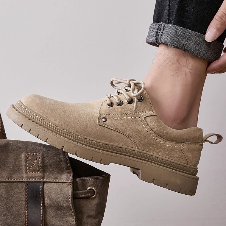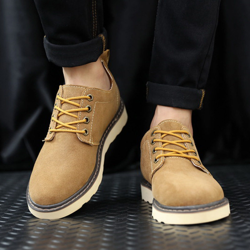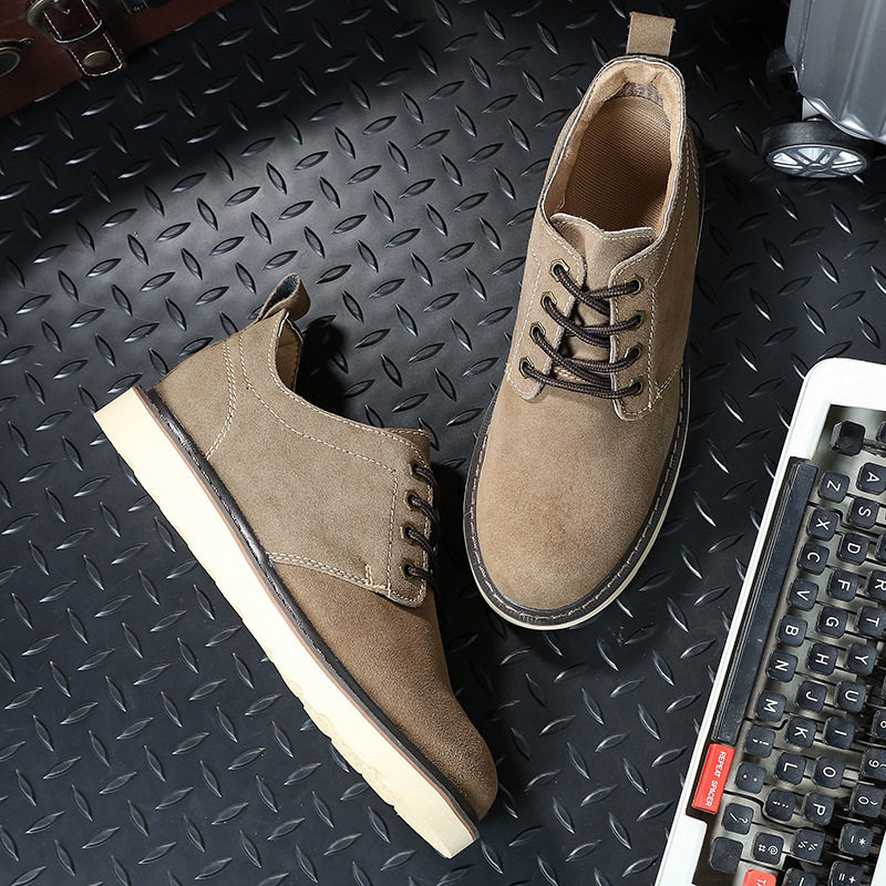 真皮工装男士休闲板鞋真皮伐木鞋圆头牛反绒皮低帮男鞋子英伦潮鞋