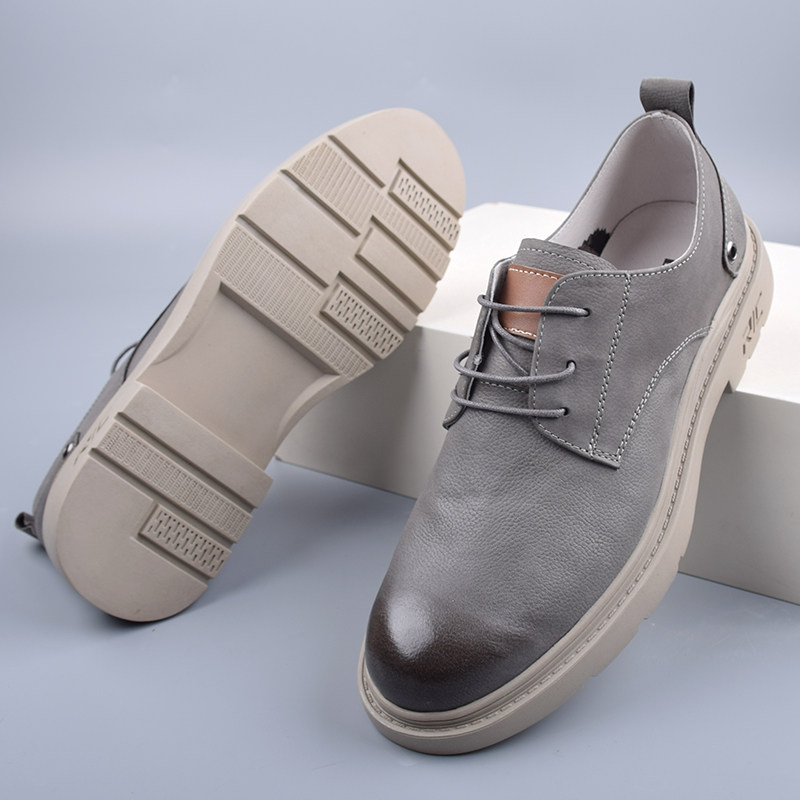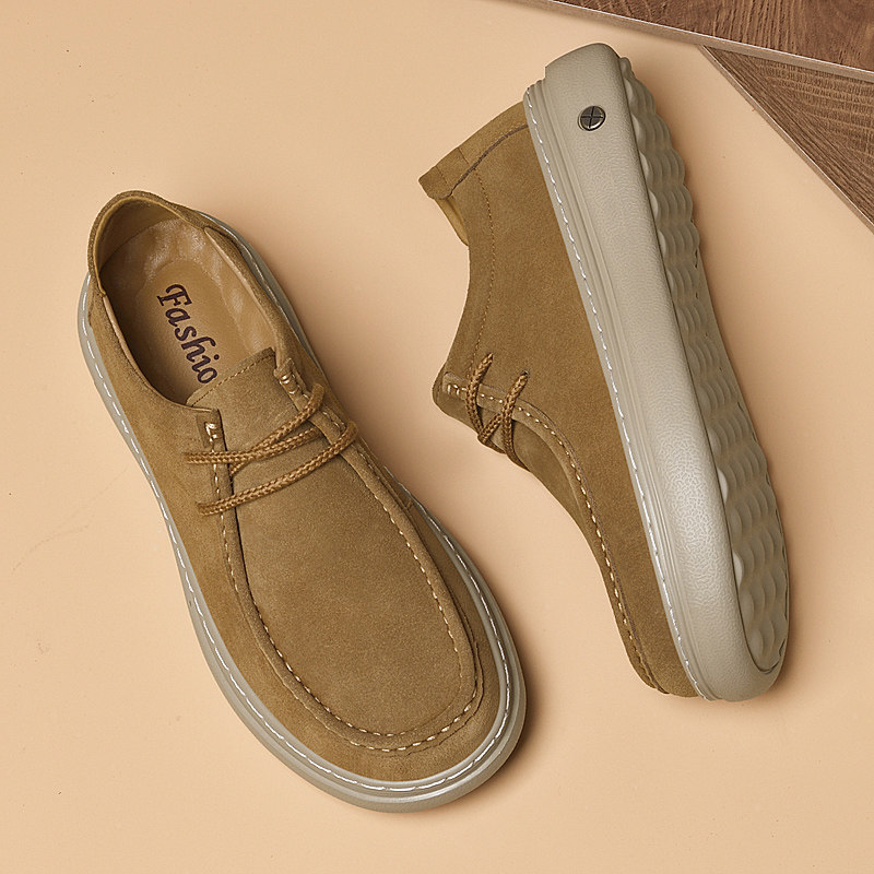 宽头休闲鞋男新款伐木鞋男士真皮厚底通勤男鞋反绒皮潮鞋复古百搭
