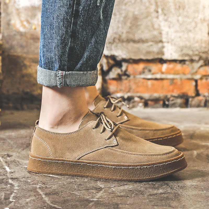 透气男士休闲鞋板鞋英伦休闲皮鞋反绒皮复古潮鞋男鞋子伐木鞋夏季