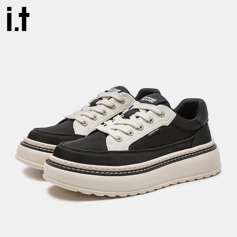 it izzue伐木鞋男黑色2025新款网面透气厚底增高软底学生板鞋潮