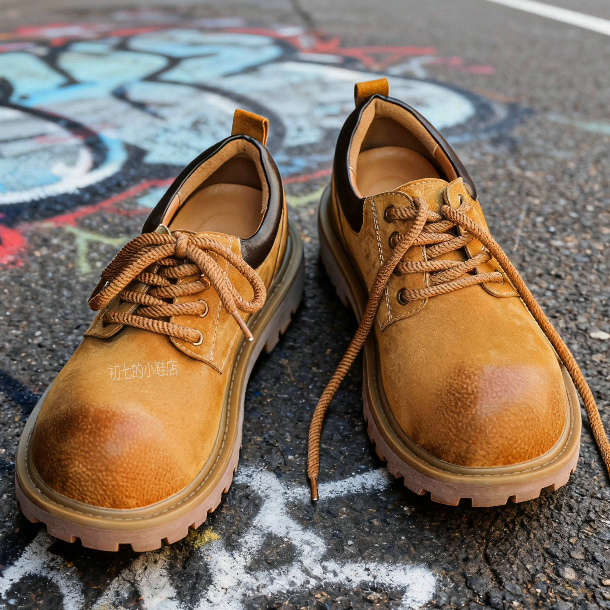 男士德比鞋大头皮鞋真皮黄色工装鞋美式伐木鞋反绒翻毛大黄鞋小众