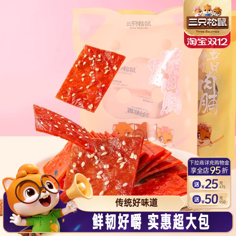 三只松鼠猪肉脯猪肉干100g*3袋熟食小吃休闲办公室零食靖江特产