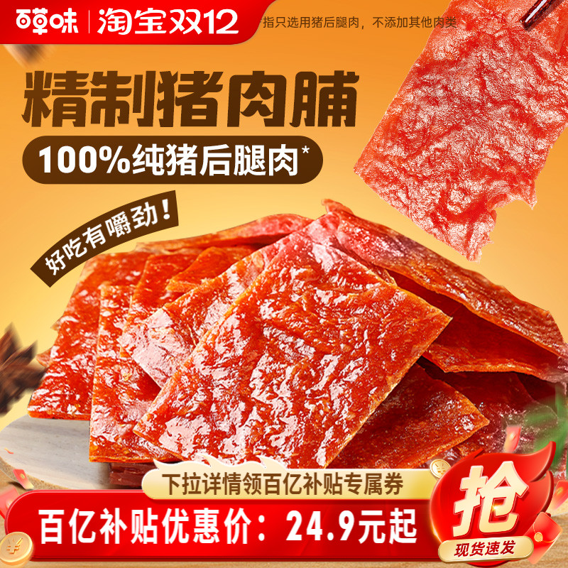 百草味香烤猪肉脯150g肉类熟食休闲零食即食解饿肉干类小吃食品