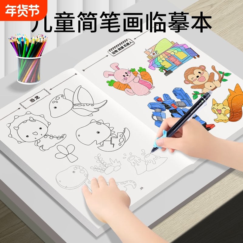 线描临摹画册儿童简笔画入门练习册素描图画纸涂鸦涂色本绘画填色