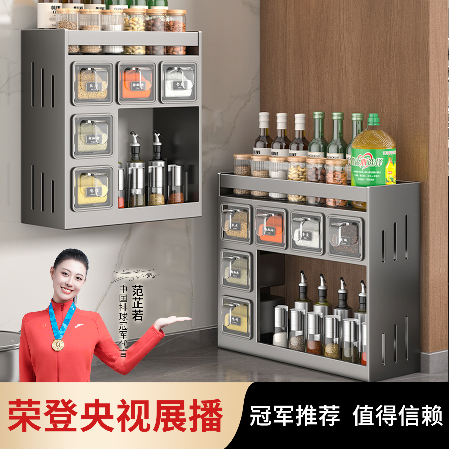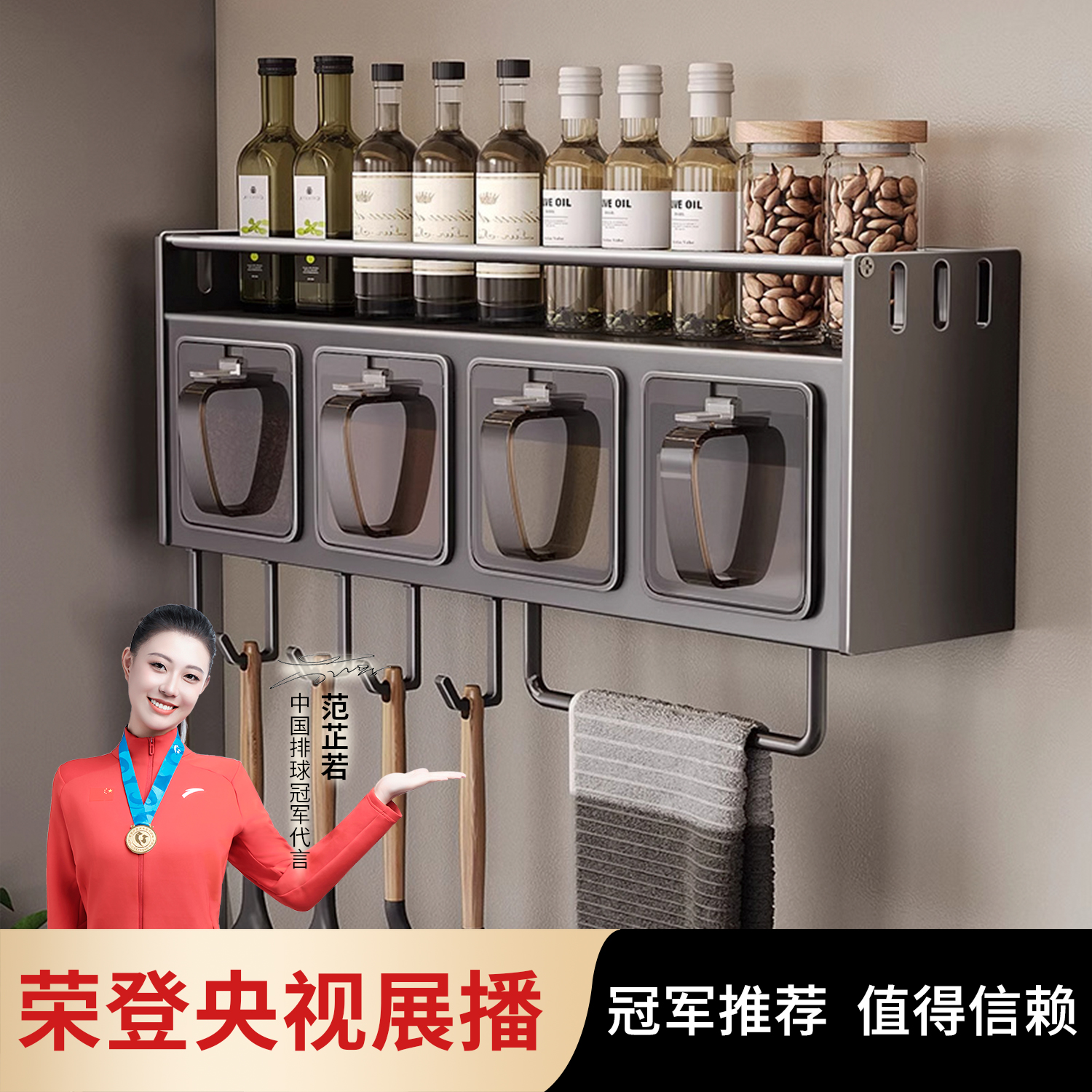 厨房调料盒置物架壁挂式高端家用墙上调味架酱油醋组合免打孔轻奢