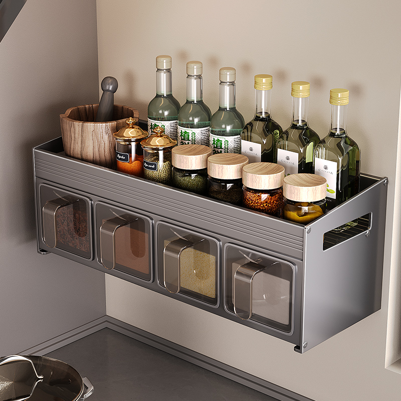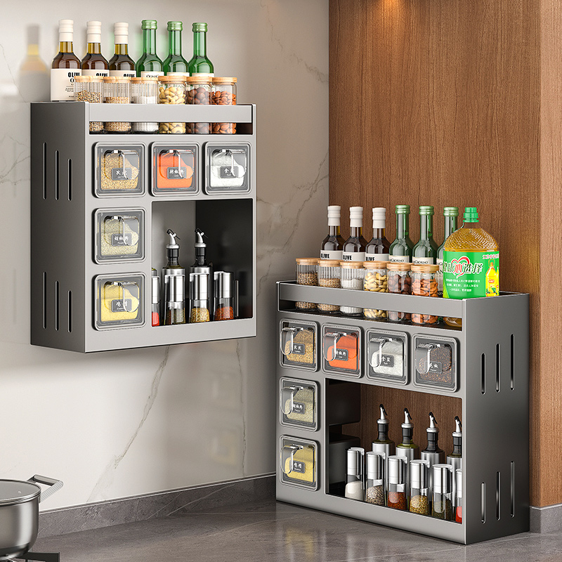 厨房灶台上收纳置物架厨房调料盒家用厨房高颜值可壁挂调料收纳盒