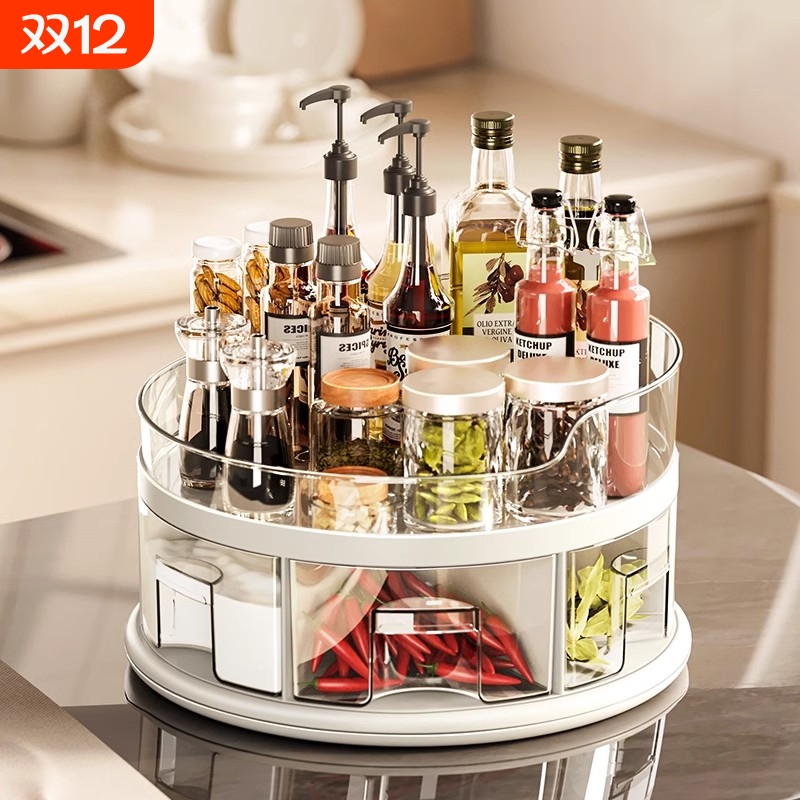 旋转调料置物架厨房台面多功能油盐酱醋调味料用品家用大全收纳盒