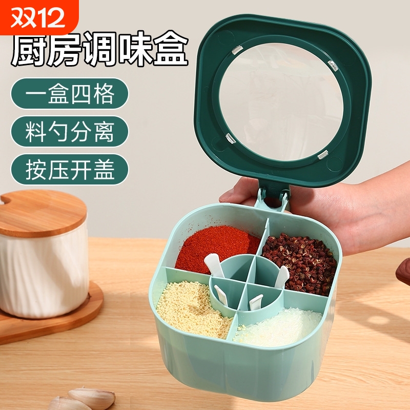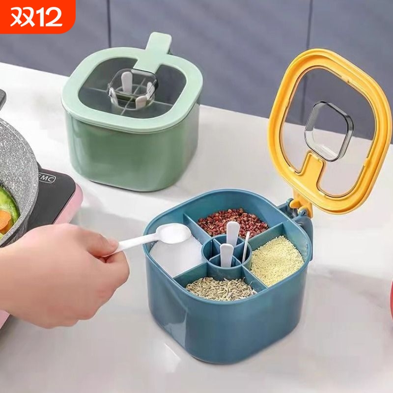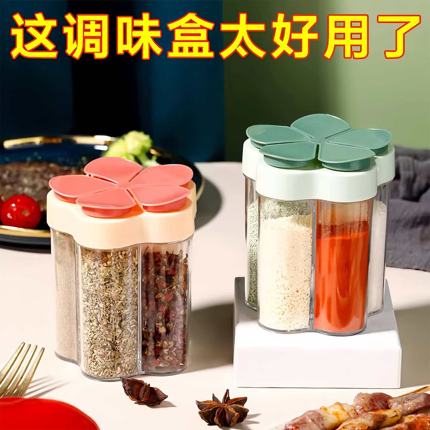 厨房调料盒四格一体带盖多功能家用厨房调味料盒糖味精盐糖收纳盒