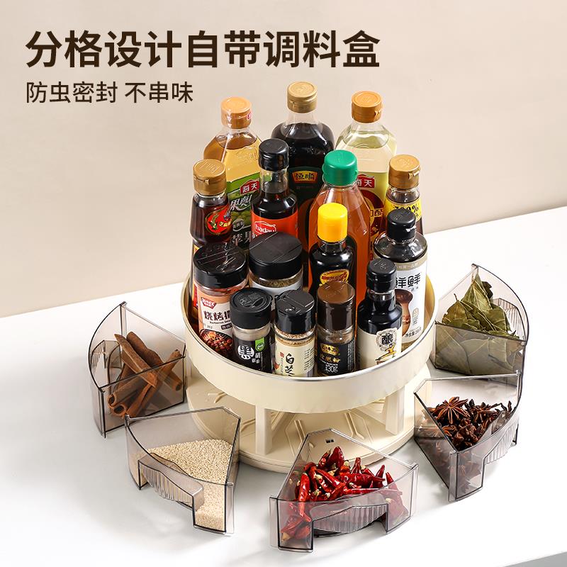 厨房调料盒多功能旋转家用多格台面调味品置物架收纳盒调味料托盘