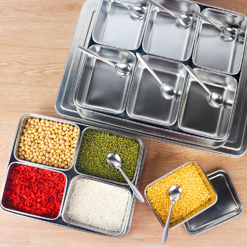 不锈钢调味盒商用厨房调料盒带盖收纳盒多格冰粉摆摊盒六格配料盒