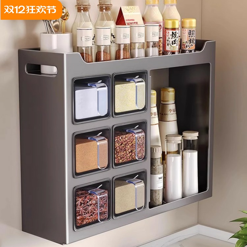 新款厨房调料盒置物架免打孔壁挂式调味调料品盐罐多功能台面收纳