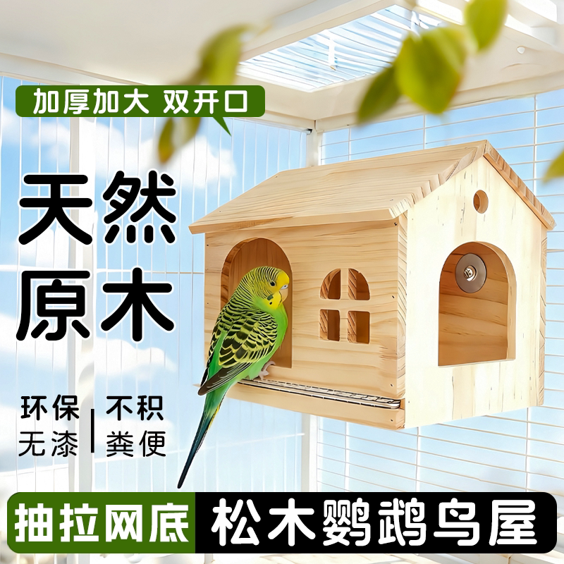 【宠大条】鹦鹉鸟窝木屋抽拉不锈钢底网虎皮牡丹玄凤躲避玩具鸟房