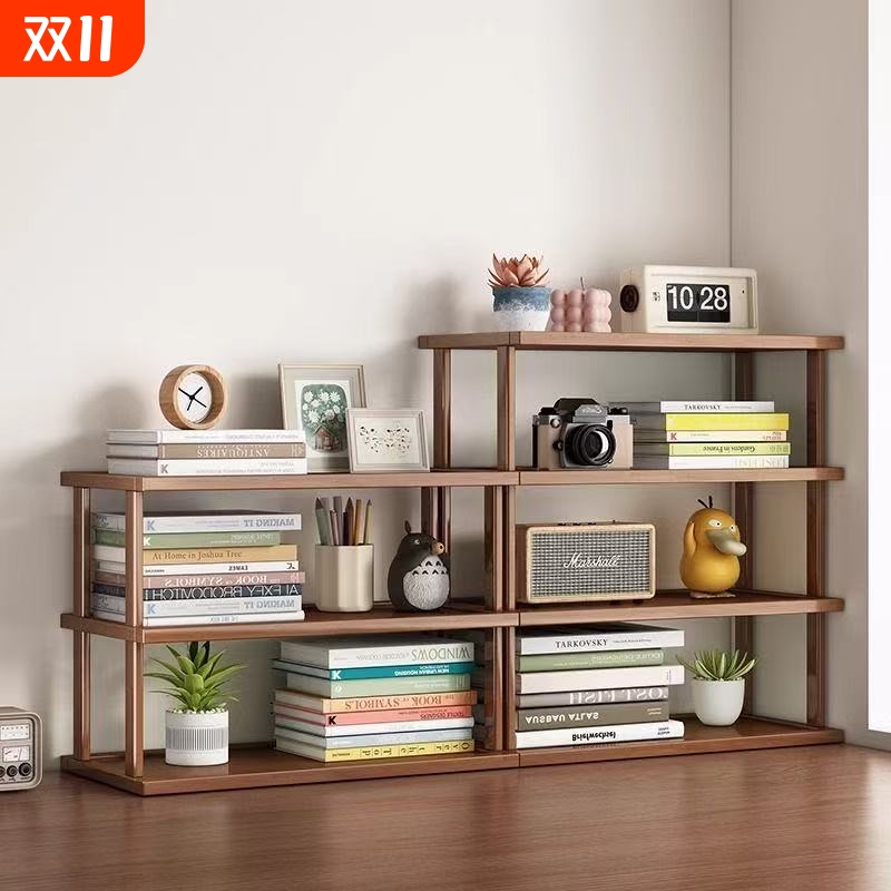 实木书架桌面置物架客厅简易书桌收纳多层架子办公室桌上小型书柜