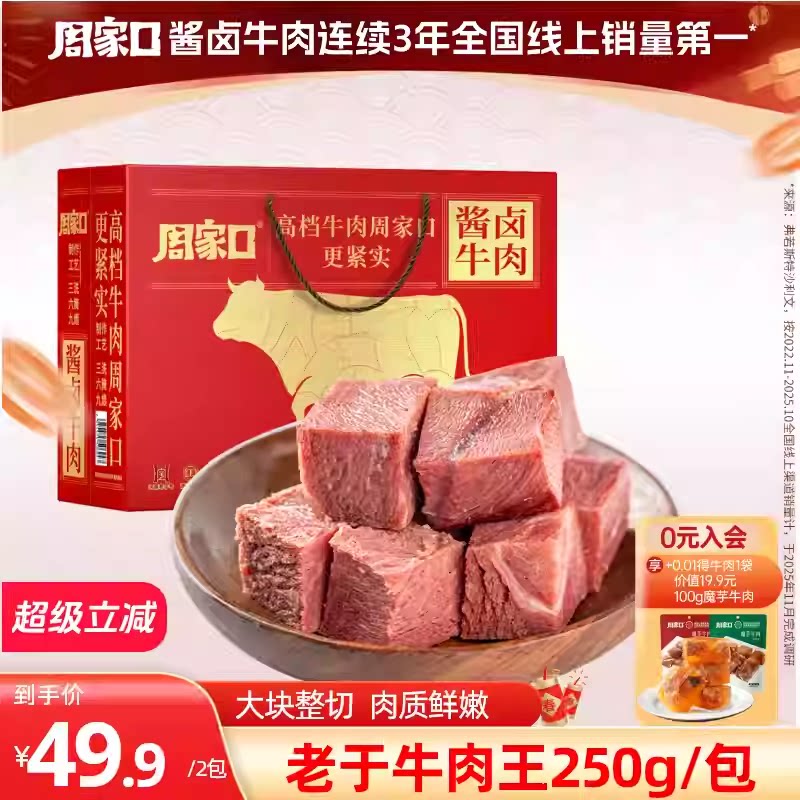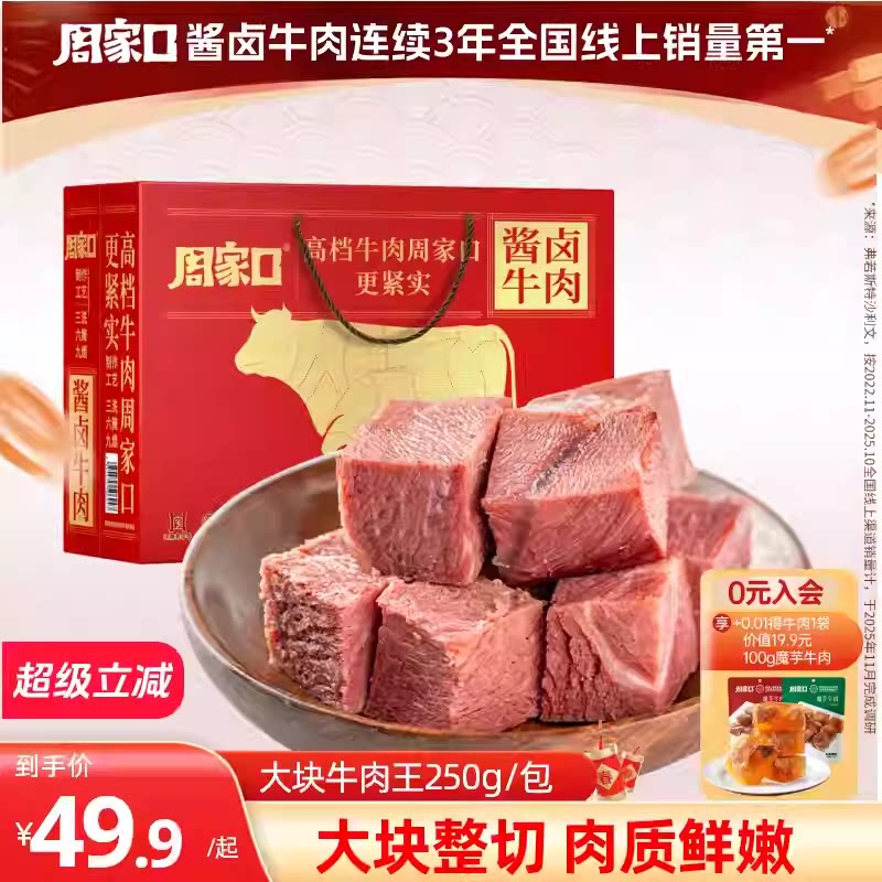 【1斤熟牛肉】河南特产周家口酱牛肉大块熟食真空五香卤健身即食