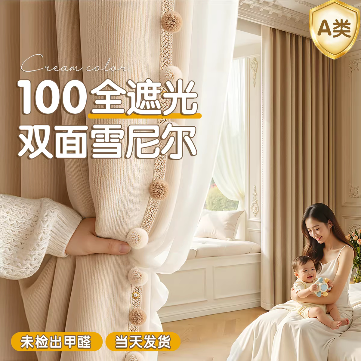 母婴级遮光窗帘卧室2026新款柯桥A类双面雪尼尔高级感客厅定制布