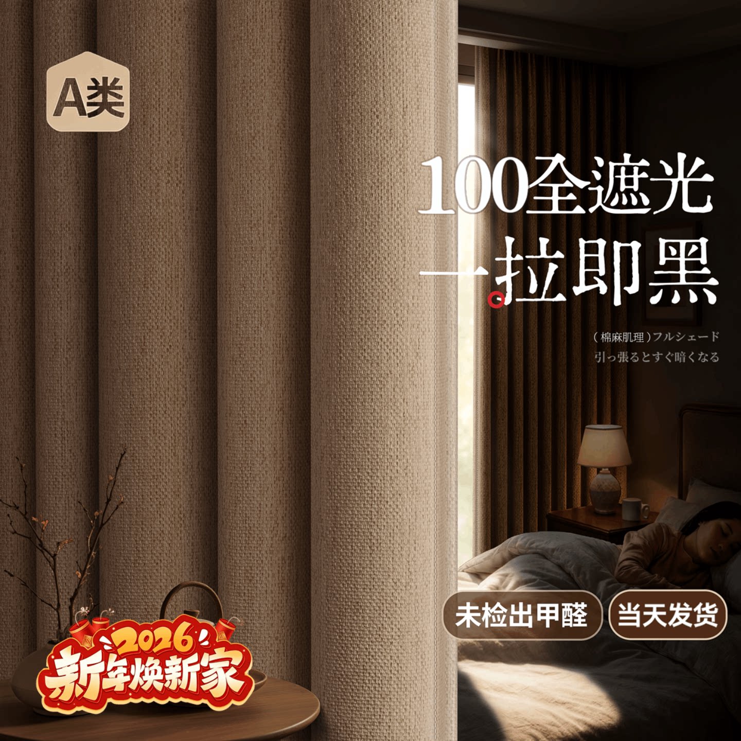 卧室全遮光防晒隔热专用窗帘2026新款阳台遮阳帘100不透光加厚布