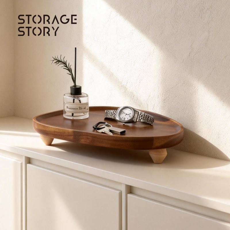 胡桃木玄关托盘木质轻奢高级感入户门钥匙置物架杂物收纳装饰摆件