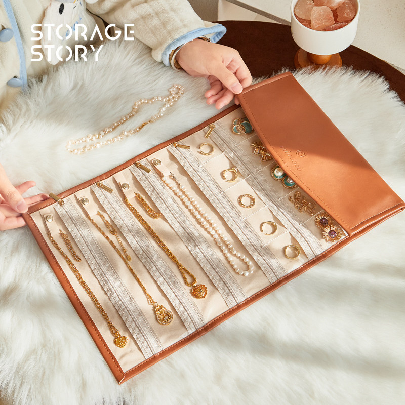 皮质首饰收纳包便携黄金戒指项链高档精致大容量收纳卷袋旅行神器