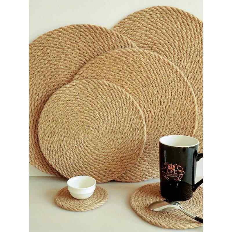 北欧风|亚麻草绳编织餐垫杯垫 隔热垫餐桌家居马克杯垫拍照花瓶垫