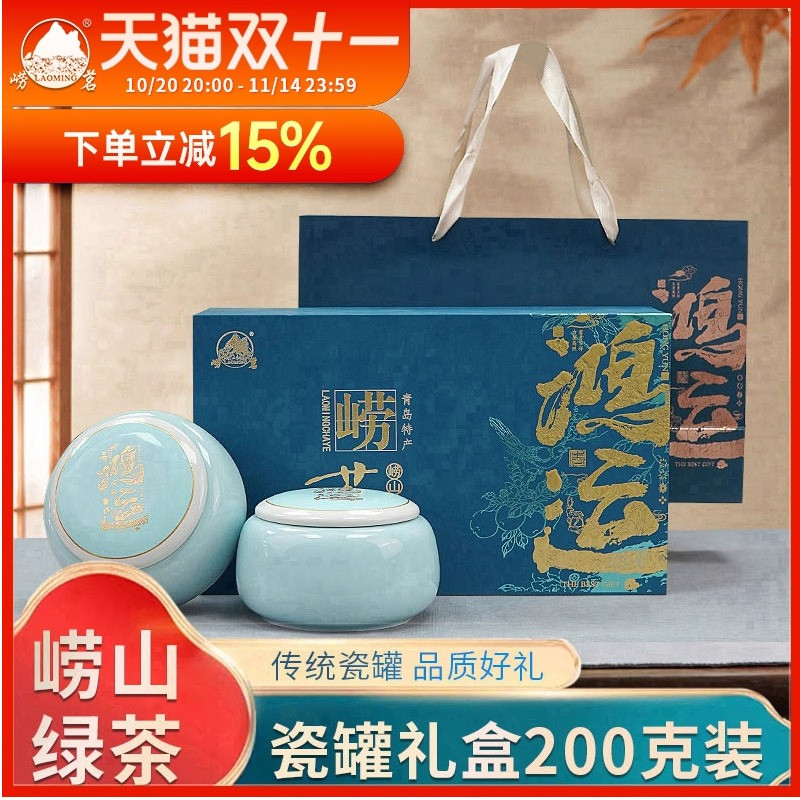 崂茗崂山绿茶2025新茶陶瓷双罐礼盒装浓香型豆香青岛特产茶叶送礼