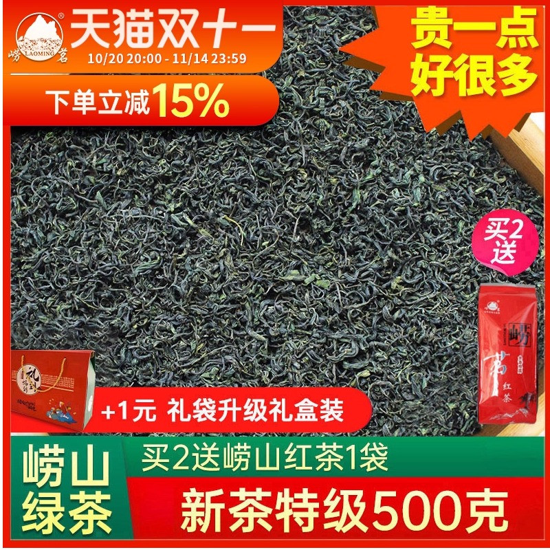 正宗崂山绿茶新茶叶豆香浓香型500g袋装散装山东青岛特产礼盒口粮