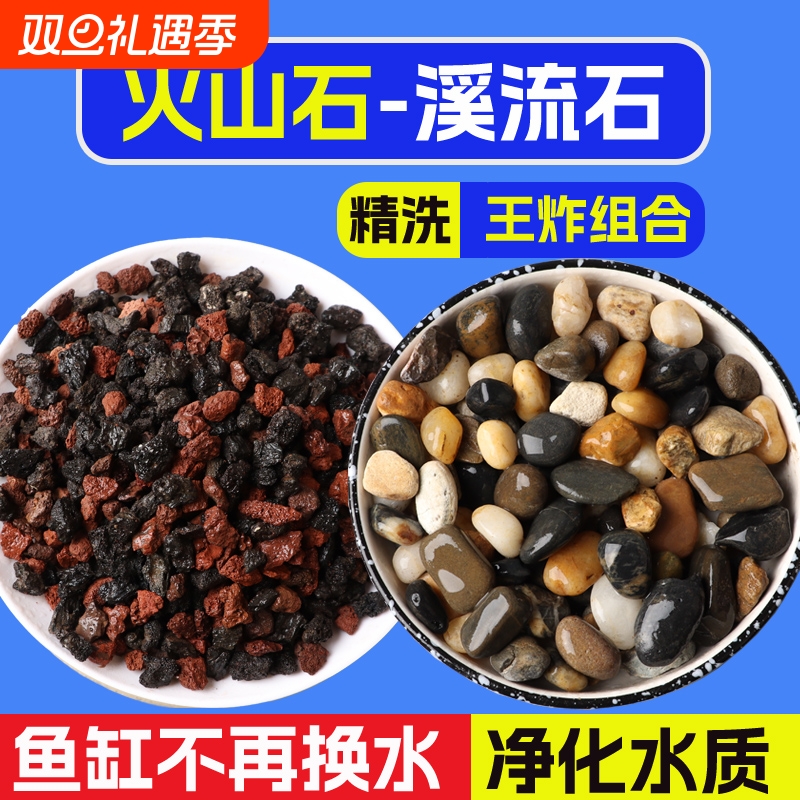 火山石溪流石鱼缸底砂造景砂石原生态古法养鱼天然装饰小石子套餐